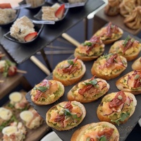 Брускетта с хамоном,халапеньо и перепелиным яйцом