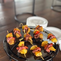 Мини шашлычки из свинины с грибами, томатами и перцем