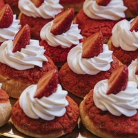 Профитроли со сливочно-клубничным кремом в шоколадной глазури