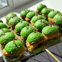 Мини бургер Green с куриным филе в сухарях , сырным соусом и корнишонами